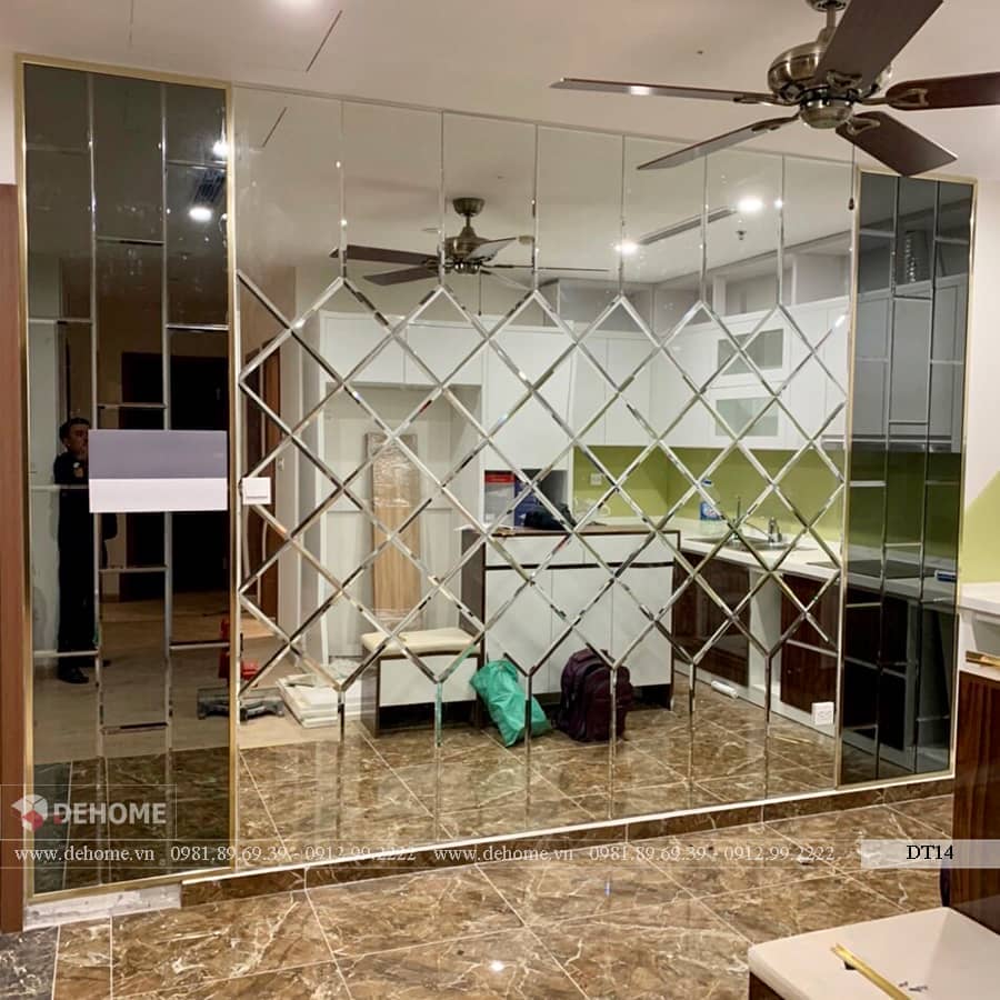 kính Thủy trang trí – Gương ghép tường nghệ thuật được tạo bởi những tấm gương chia nhỏ và mài vát cạnh. Sau đó ghép với nhau theo nhiều kiểu và hình dáng khác nhau tuỳ vào mỗi thiết kế, yêu cầu của khách hàng. Để tạo thành một ô gương lớn tổng thể vừa trang trí cho nội thất vừa tối ưu được công năng sử dụng cho không gian của bạn. Các tấm kính thuỷ thường được ghép với nhau theo hình thù sao cho phù hợp với không gian cần trang trí như quả trám, hình vuông, hình nhữ nhật hay gương ghép hình lục giác.